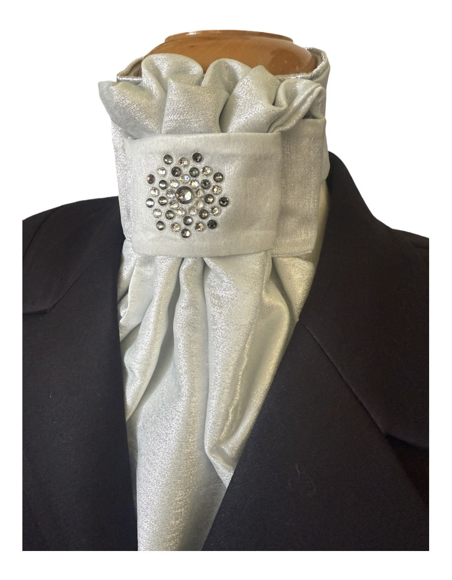 The HHD Euro Dressage Stock Tie Queen’ in a shimmer satin. Stunning elegant design with Swarovski Elements, silver metallic piping on edge of the necks and. Stand out at your next competition